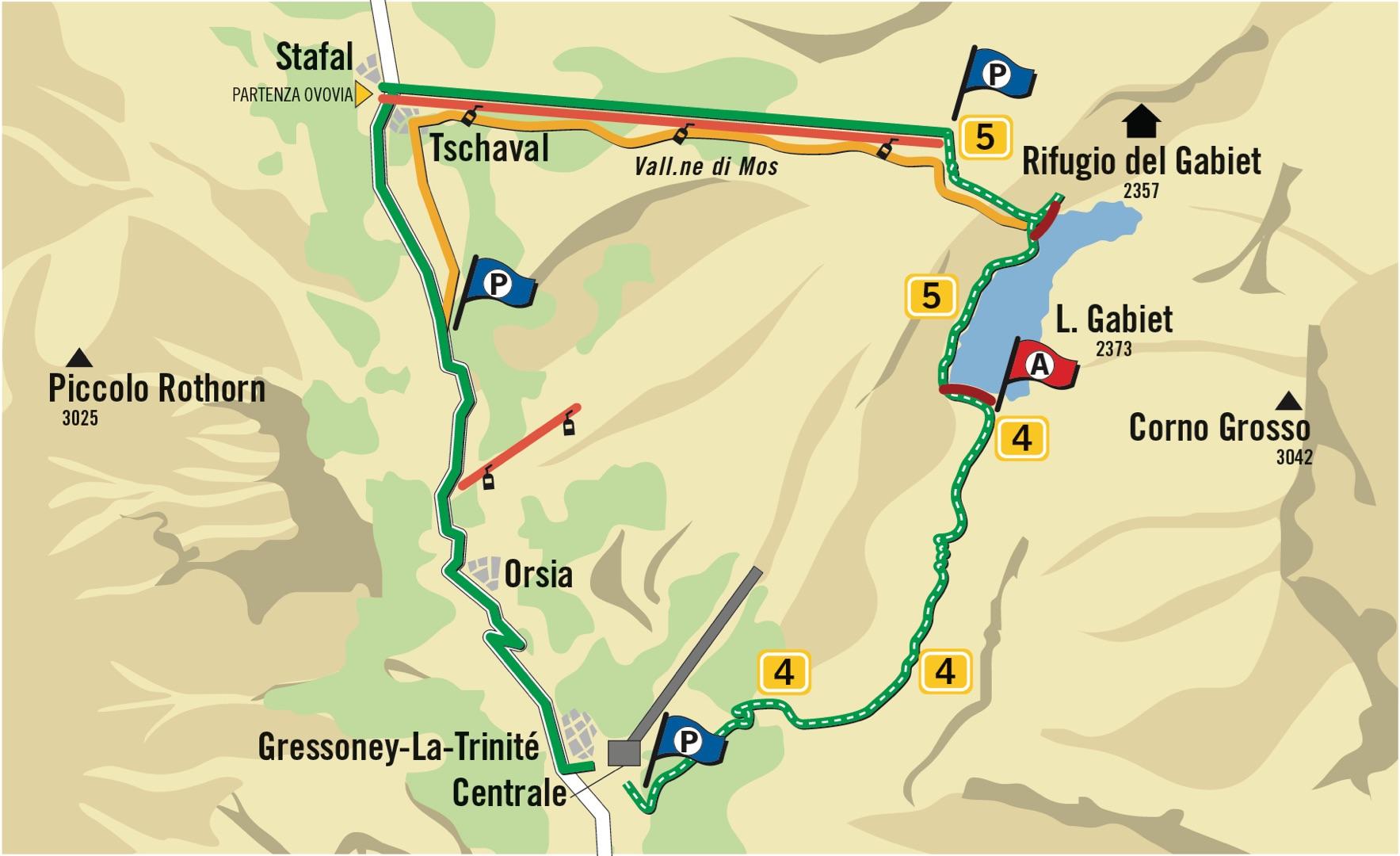 Gressoney-La-Trinité 2.373 m slm telecabina bike a piedi /dighe-del-gabiet